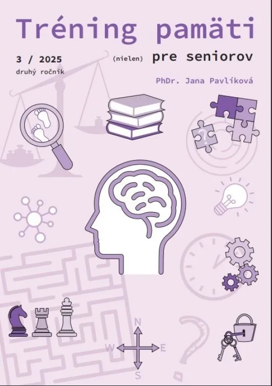 Zošit na 36 stranách prináša množstvo zaujímavých úloh, ktoré podporujú pamäť, myslenie, pozornosť a postreh, cibria slovnú zásobu a rečové schopnosti. Nájdete v ňom nové a rozmanité cvičenia zamerané na tréning pamäti, pozornosti, logického myslenia, úsudku, matematických schopností či slovnej zásoby a kreativity. Úlohy sú vytvorené tak, aby zapojili do aktivity aj tie časti mozgu, ktoré pri bežných každodenných činnostiach nie sú dostatočne stimulované a využívané. Opäť sú pre vás pripravené zábavné a interaktívne aktivity vrátane rébusov, hlavolamov, filmových hádaniek, prešmyčiek, doplňovačiek, skrývačiek, zrkadloviek, analógií, bludísk, matematických záhad, prekrývačiek, porovnávačiek... či mnohých ďalších úloh, ktoré nielen preveria vaše vedomosti, ale tiež prispievajú k udržaniu sviežej a aktívnej mysle.